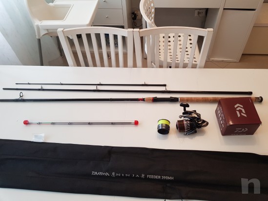vendo nuovissimo comprato un mese fa e mai usato canna Daiwa ninja feeder 390 40-120 con tre azioni più mulinello Ninja fatto a posta per il Feeder 4012A 2 Bobin2 con fluorocarbon trabucco 0.22 e Fluorocarbon Daiva 0-21 compresi