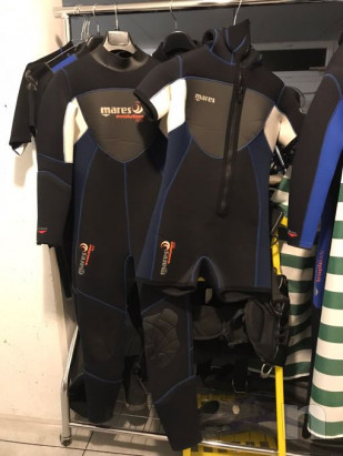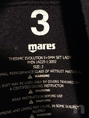 Vendo causa inutilizzo Muta doppia della Mares 5+5 mm, Evolution Lady, composta da muta lunga e mutino short entrambi da 5 mm. Taglia 3 (42-44) altezza 165-173 cm e peso 55-62 kg. Usata solo in acqua dolce.